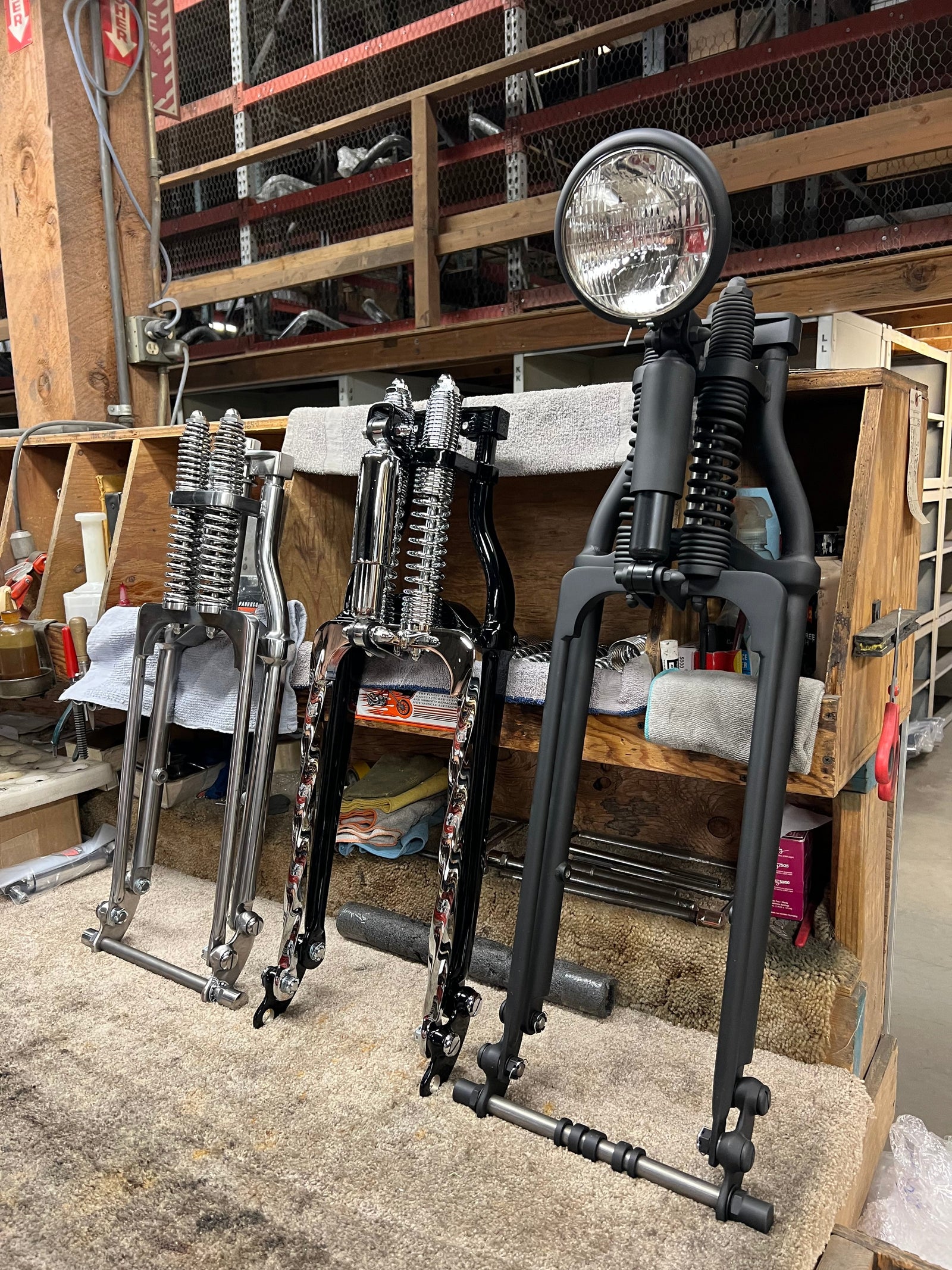BUILD ITPaughco offers the industry’s largest selection of Harley-Davidson® Springer front ends, including narrow, wide, and wide-shock options. Each Springer comes fully assembled with a choice of Dog Bone or Glide-Style top clamp and is available with straight, twisted, or wishbone front legs, plus oval tapered or round rear legs—all chromed in-house